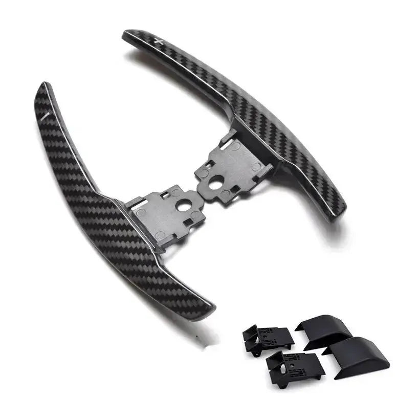 Built from billet aluminum and overlaid with real carbon fiber, they deliver a solid, mechanical feel you can actually sense through the wheel. The result is cleaner, more satisfying shifts every time you tap.