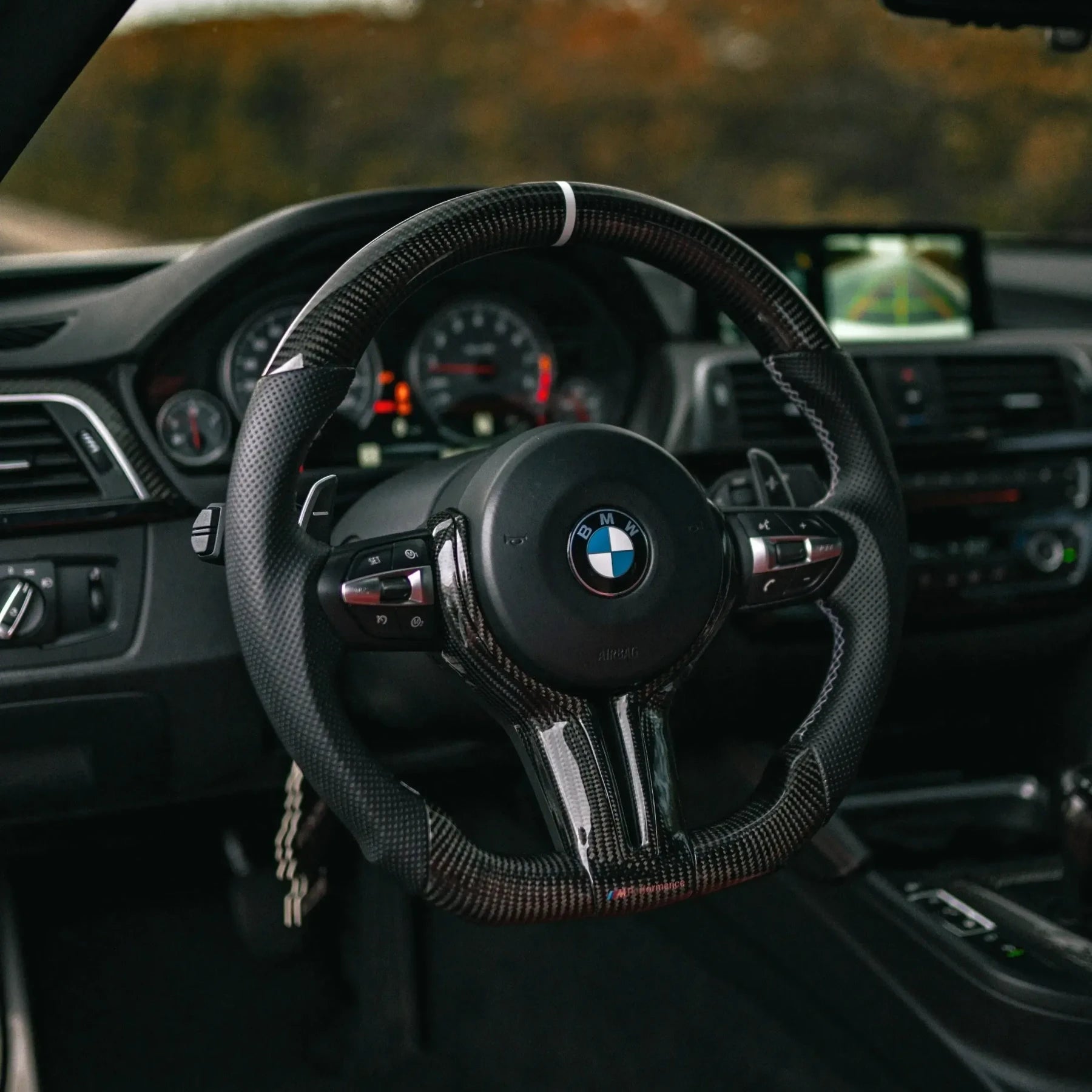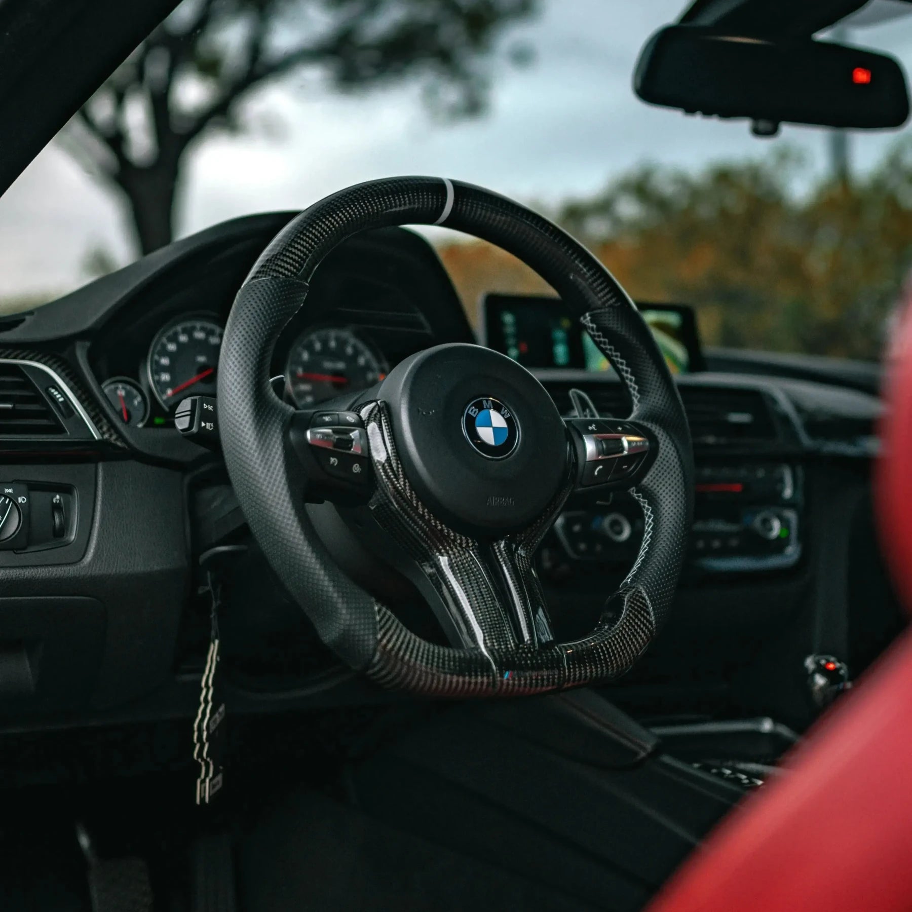 The BMW F Chassis Configured Steering Wheel is for the drivers who notice everything: the feel at 9-and-3, the way Alcantara bites your palms, and how carbon fiber changes the vibe of the whole interior. It’s a simple swap that makes your BMW feel more focused every time you start it up.