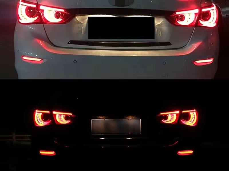 Enhance the style and visibility of your INFINITI Q50 with our Q50 Rear Bumper Sequentials. Designed to fit the 2014-2017 INFINITI Q50 model, these Rear Bumper turn signal Sequential LED lights not only improve safety but also add a modern and dynamic look to your vehicle. Upgrade your Q50 with these high-quality lights and turn heads wherever you go.
